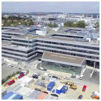 Flugaufnahmen innen und außen des neuerrichteten Bürokomplexes H6 am Audi-Standort Ingolstadt.